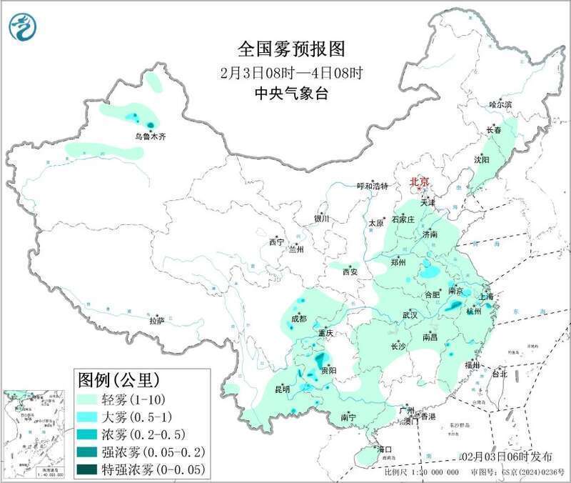 此外,3日早晨至上午,安徽北部和南部、四川盆地南部、贵州西部等地的部分地区有大雾,局地有能见度不足200米的强浓雾。